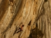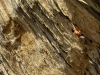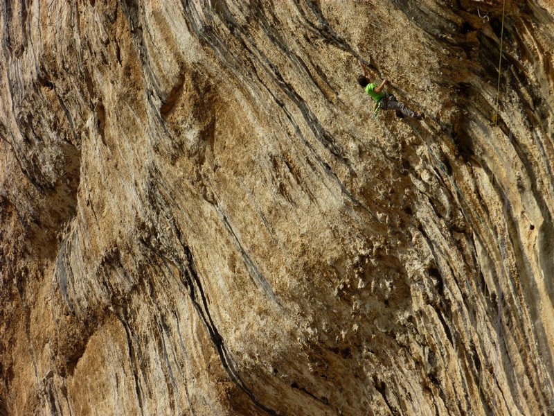 Lorsque l’on rentre dans le vif du sujet, on atteint très vite des longueurs flirtant avec les 50m. Dans ce style, Kévin empoche en quelques essais « Le chamane du bout du monde », le 8b+ classique de la falaise, suivi par Florence Pinet et Gérôme Pouvreau (qui manque un faux à vue de peu). Le charmant couple a en effet squatté le pied de falaise (et aussi touché quelques relais) avec nous quelques jours. Guilhem poursuit sa quête de la croix de la falaise en sortant « La déroute », un 8a/+ récent, variante de droite du Chamane, que Kévin parcourra presque à vue en fin de séjour. Toujours dans le style bien long, Gérôme fait la première du « crépi », un 8b+/c où bizarrement, l’absence de colos semble se faire sentir au dessus du relais intermédiaire.