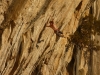 Malgré tout, un certain nombre de voies (ou de premières longueurs) offrent une amplitude moindre pour les handicapés de la conti comme moi ou pour les handicapés tout court comme Bérenger. Dans un niveau plus modeste, j’enchaine le début du chamane en 7c, la très belle « Marquée Moon » en 7c+ et le splendide « Captain marge » en (gros) 8a. Mon combat livré dans cette dernière me permet d’affirmer sans détour que « Captain taquet » correspondrait mieux à cette longueur ! Boul coche également le chamane mais manquera de peu les deux 7c+ que sont « Marquée Moon » et « Saga Africa », tandis que Kévin terminera quant à lui sa dernière journée de volume en se promenant dans toutes ces longueurs sans franchement vibrer.