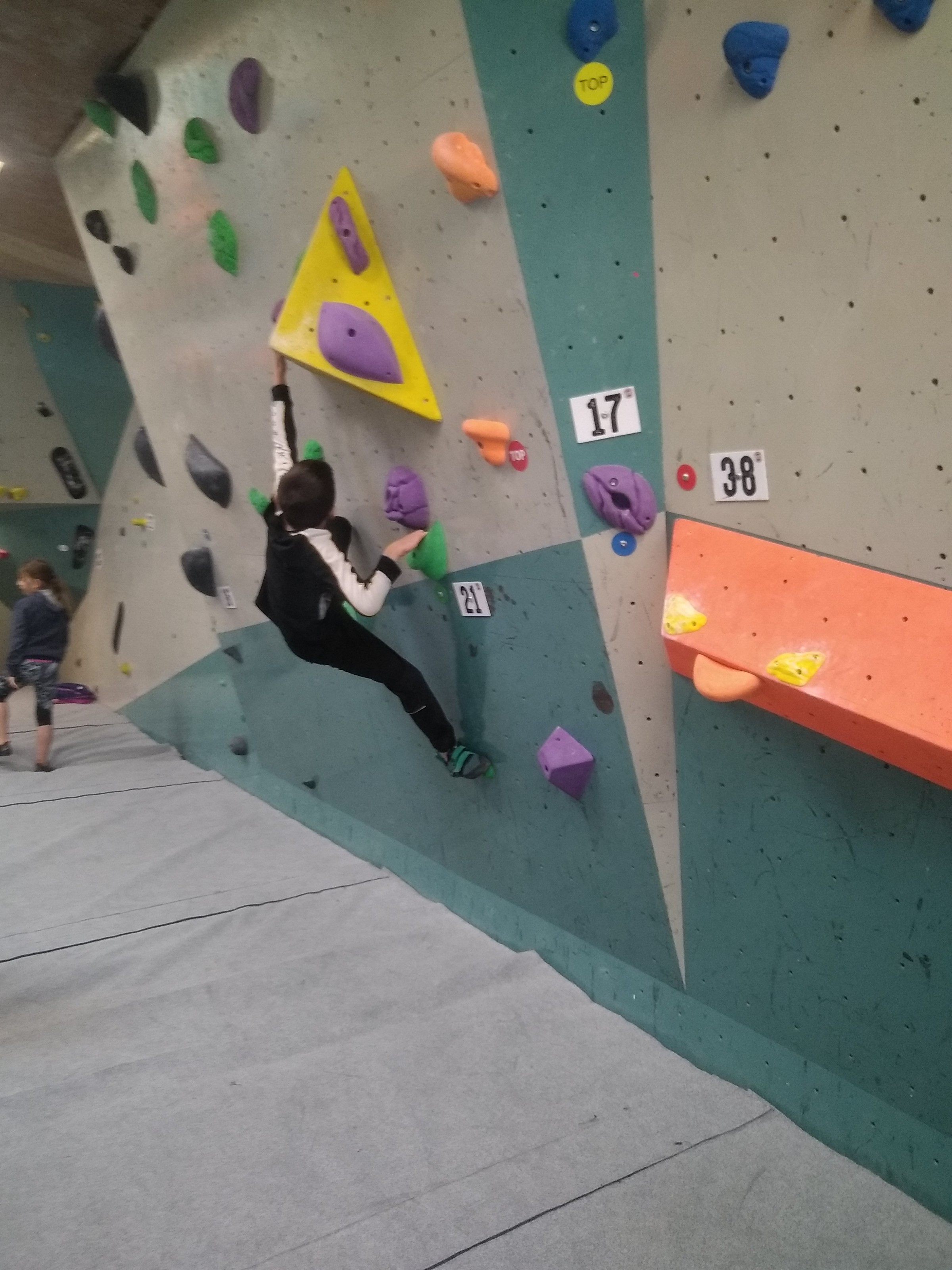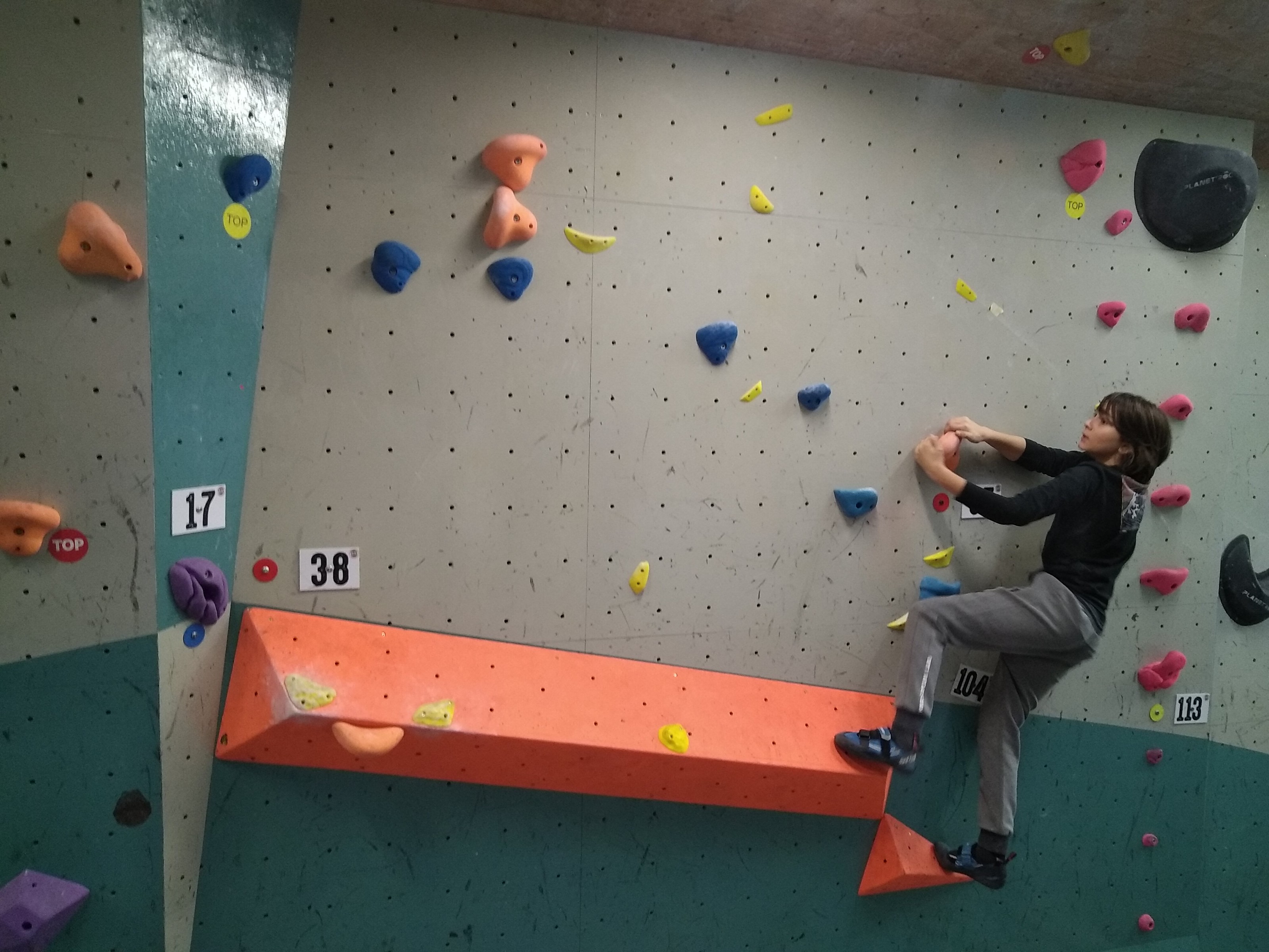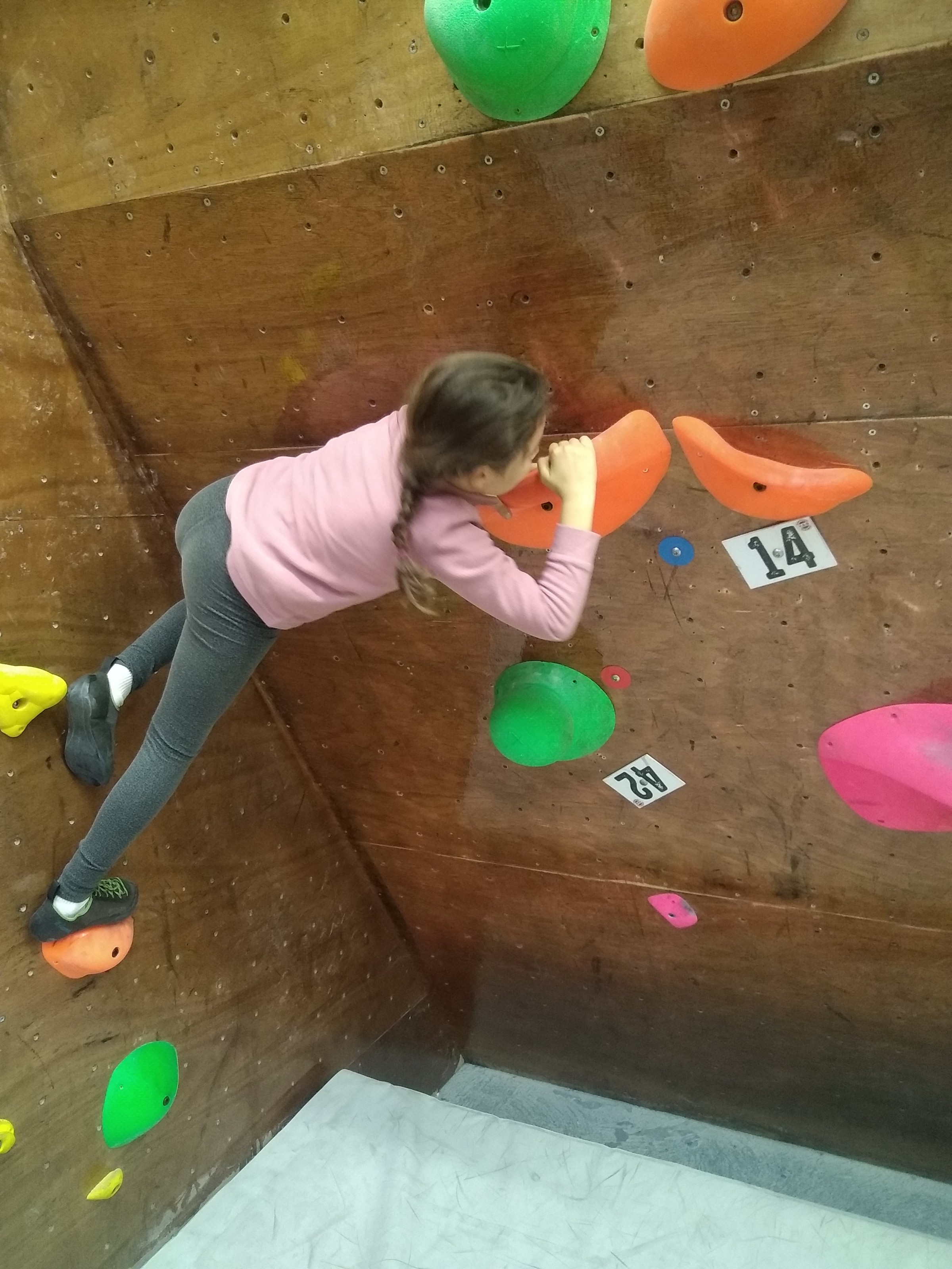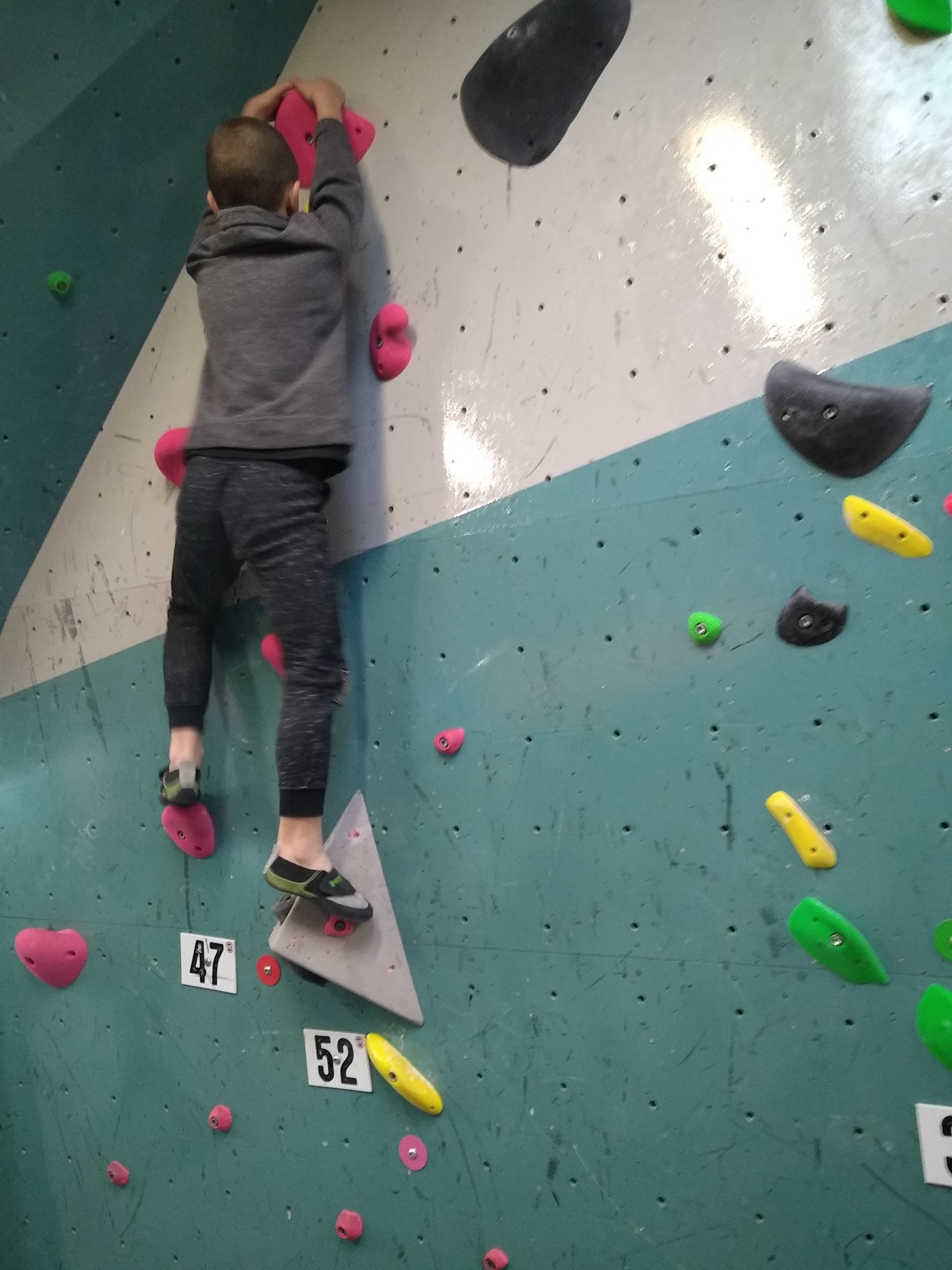 Je suis donc arrivé vers 8h45 à la salle pour accueillir les plus petits dans un froid bien local. Très vite, nous nous sommes rendus compte que ça allait être une vague difficile (pas de mauvais jeu de mot). J’ai entendu parler de 75 enfants. Il a donc fallu réunir tout le monde, trouver des parents pour juger, expliquer aux autres qu’il ne fallait pas rester dans la salle, finaliser les inscriptions, corriger les fiches qui n’ont pas été imprimées en assez grand nombre… C’était un peu la pagaille en tout début de contest mais ça s’est réorganisé. Une fois surtout que les petits ont compris le principe de la compétition, repéré les blocs et les juges. Pas facile à cet âge-là !