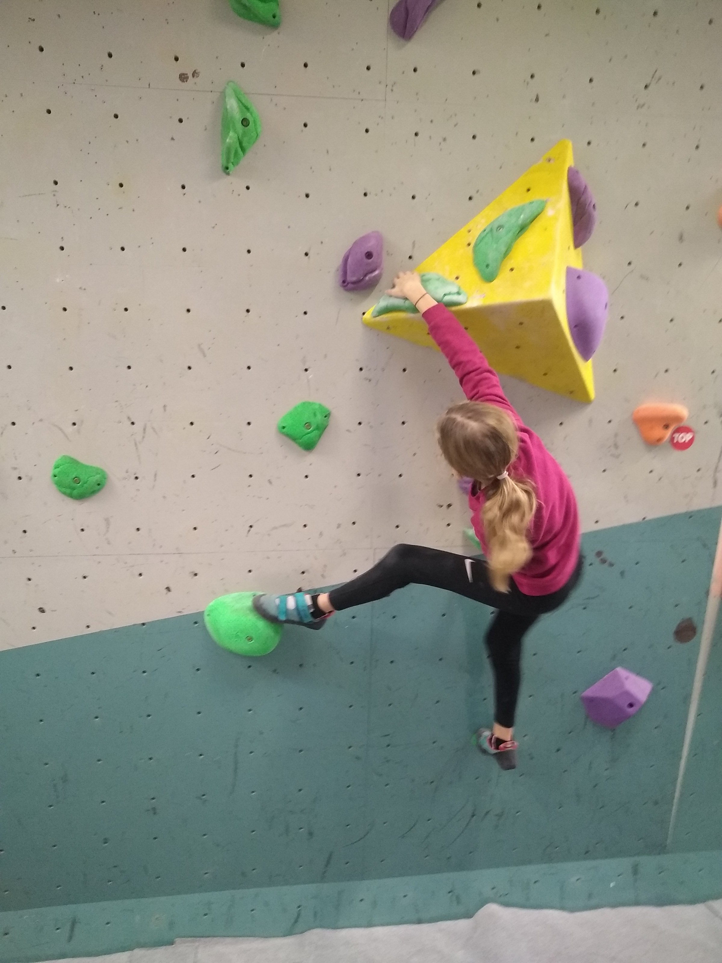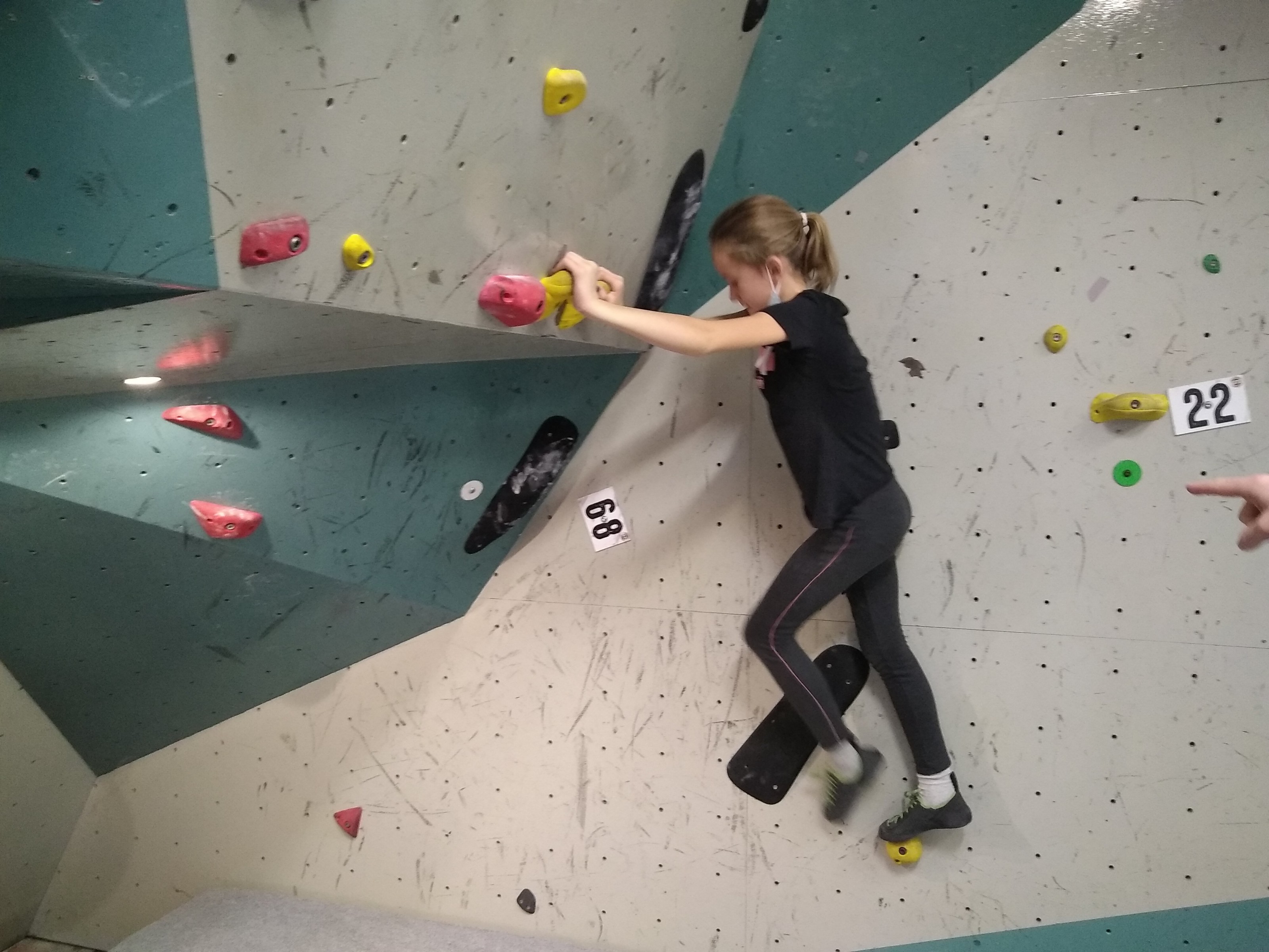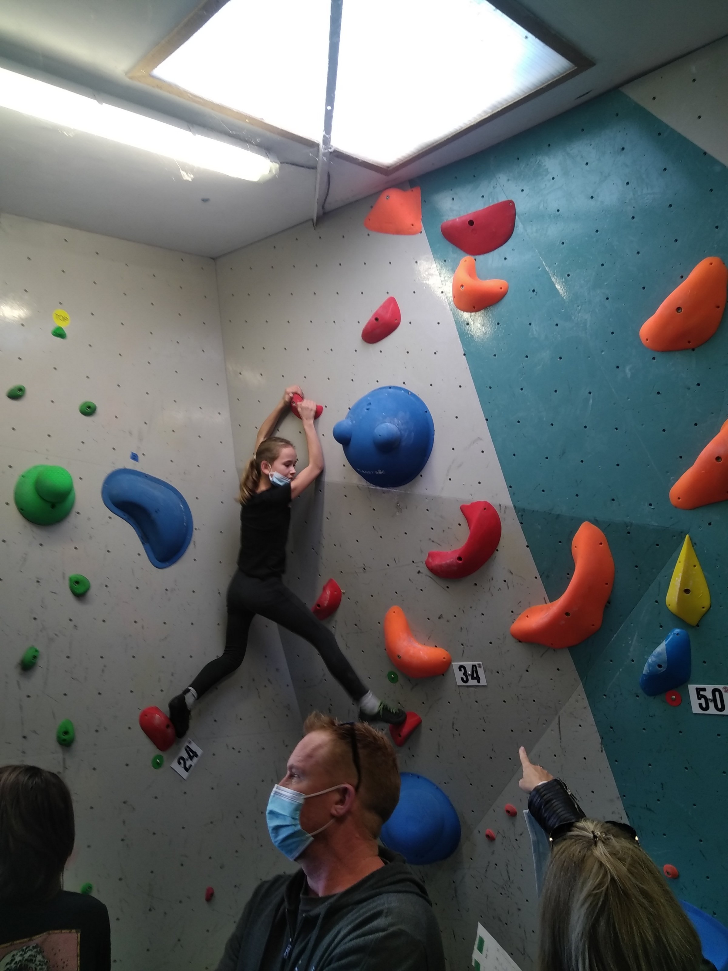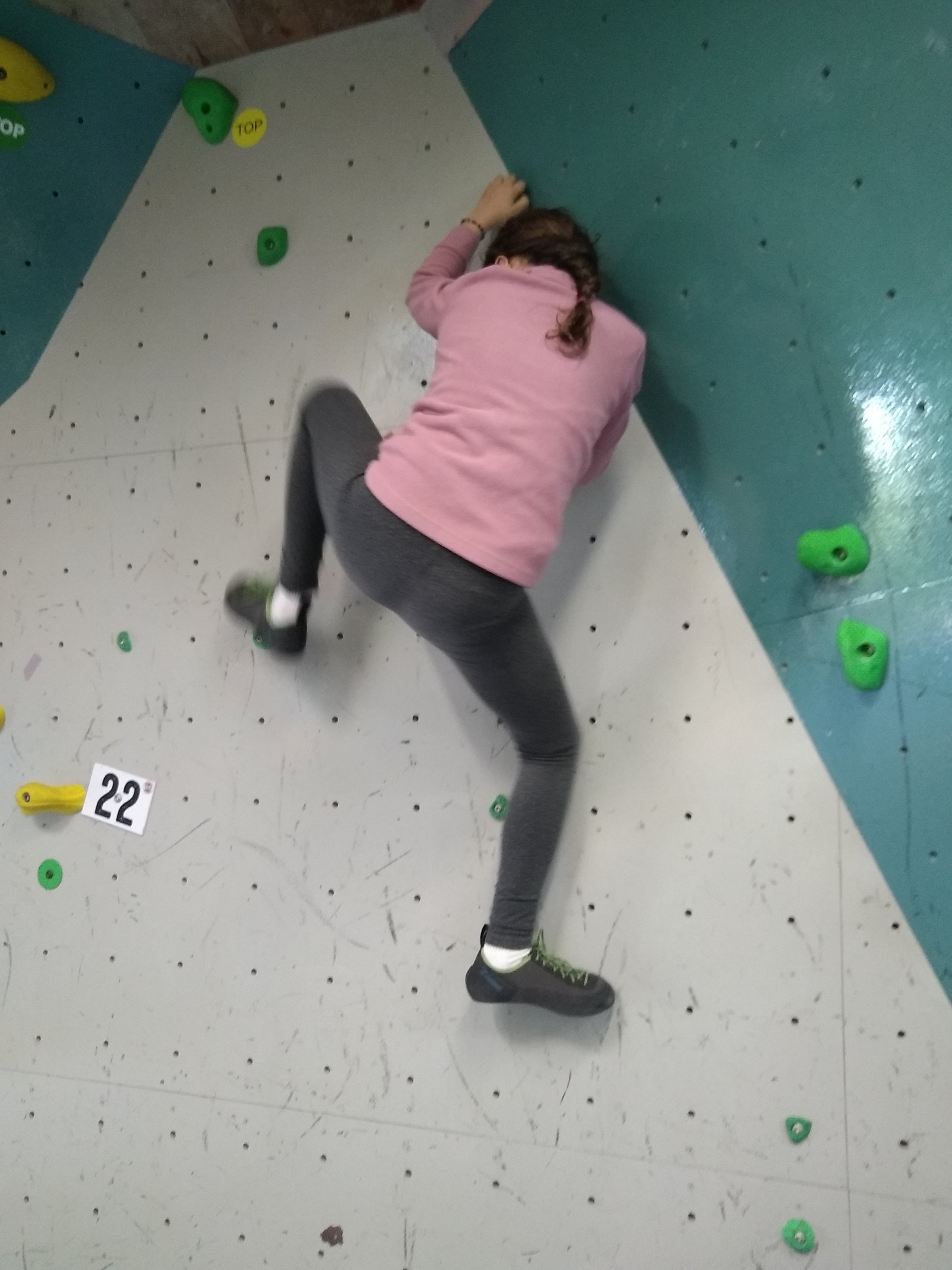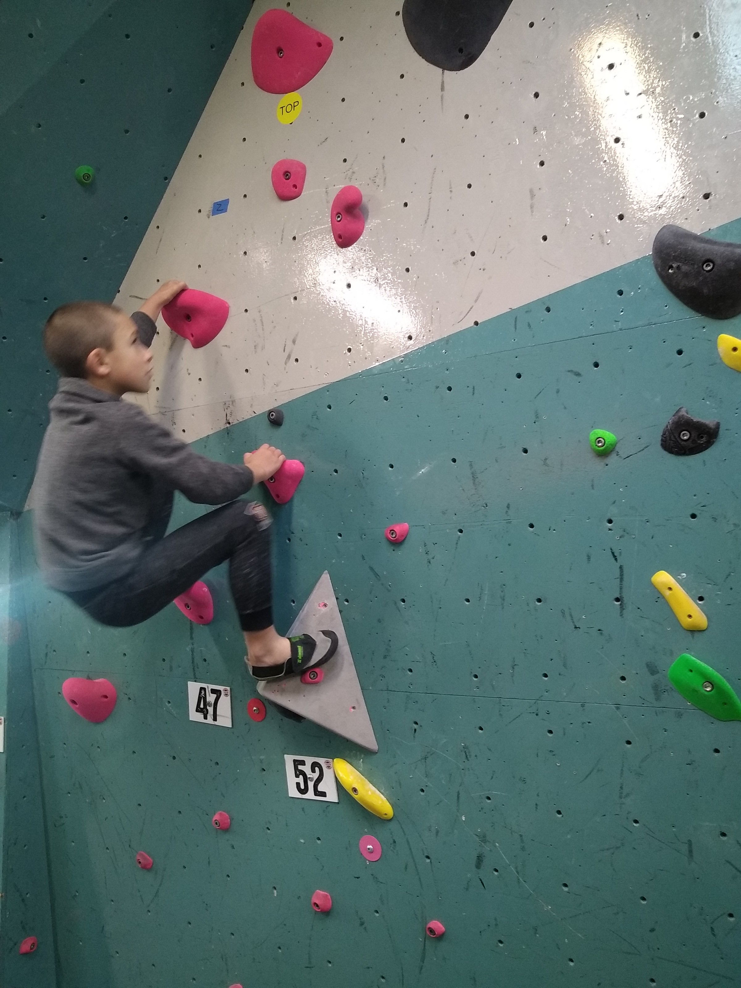 Je suis donc arrivé vers 8h45 à la salle pour accueillir les plus petits dans un froid bien local. Très vite, nous nous sommes rendus compte que ça allait être une vague difficile (pas de mauvais jeu de mot). J’ai entendu parler de 75 enfants. Il a donc fallu réunir tout le monde, trouver des parents pour juger, expliquer aux autres qu’il ne fallait pas rester dans la salle, finaliser les inscriptions, corriger les fiches qui n’ont pas été imprimées en assez grand nombre… C’était un peu la pagaille en tout début de contest mais ça s’est réorganisé. Une fois surtout que les petits ont compris le principe de la compétition, repéré les blocs et les juges. Pas facile à cet âge-là !