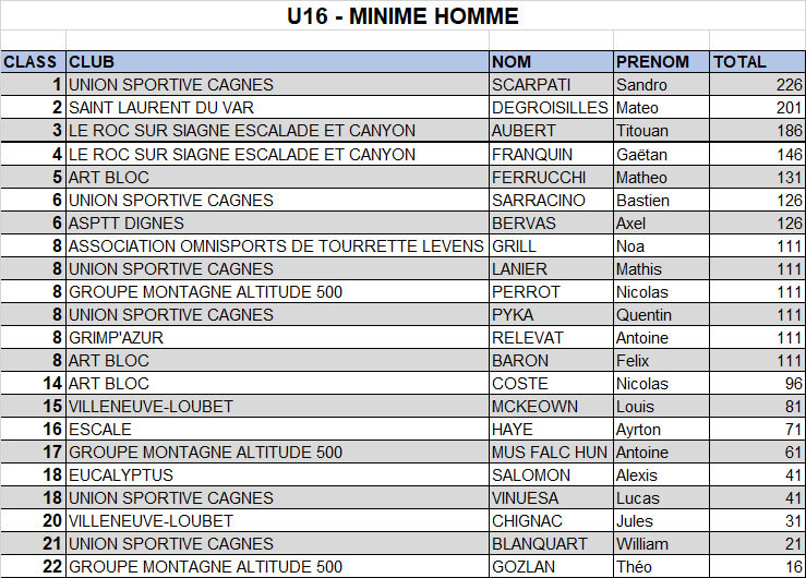 Et pour finir, Hayrton, seul participant en minime, termine 16ème.